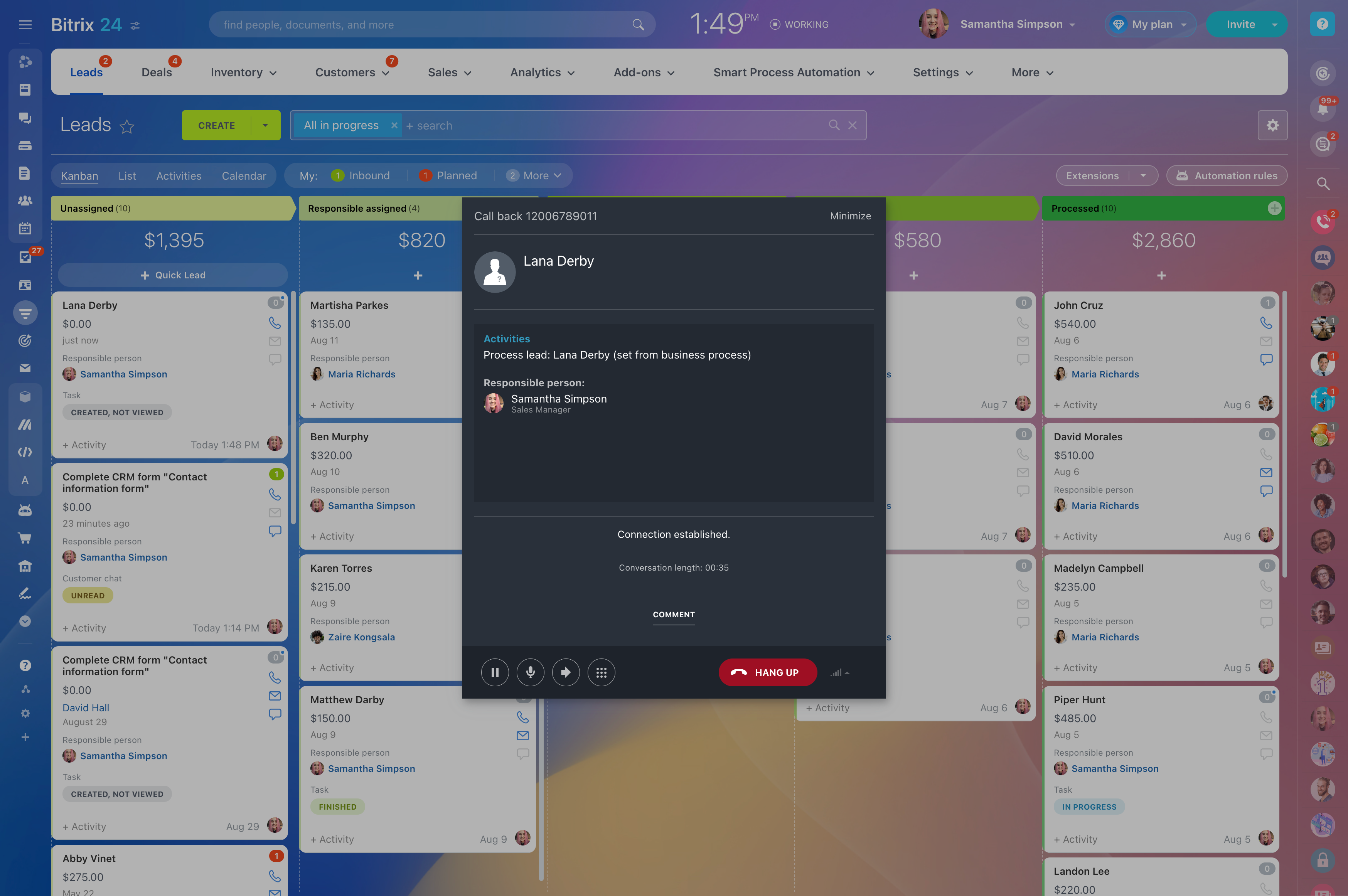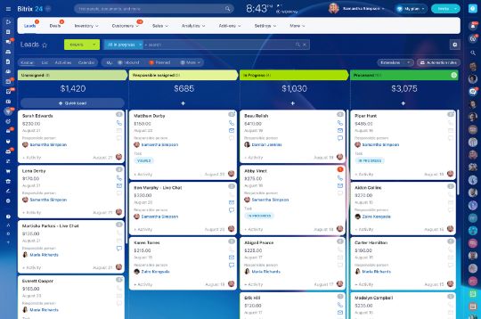 食品業界では、生産工程の管理や取引先顧客からの受注処理を効率的かつ正確に行うことが求められます。Bitrix24を導入し、これらのプロセスを一元管理し、業務の効率化と生産性向上を実現することが可能です。 顧客からの注文をリアルタイムで受け取り、迅速に処理することが可能です。顧客データベースの一元管理が、過去の取引履歴や顧客の好みを把握し、よりパーソナライズされた対応が可能になります。
